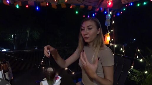 Русская девушка в Индии ничего не боится, показывает Гоа ночью, местное кафе