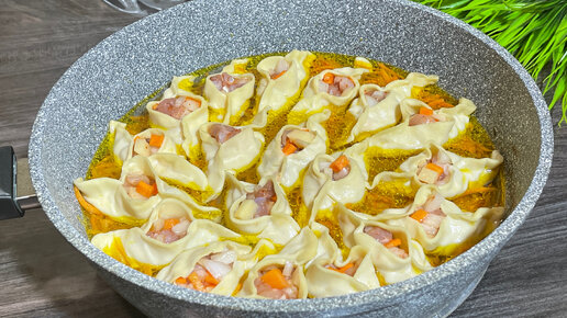 Манты без мантоварки, на одной сковородке сразу с подливкой. На обед или на ужин.