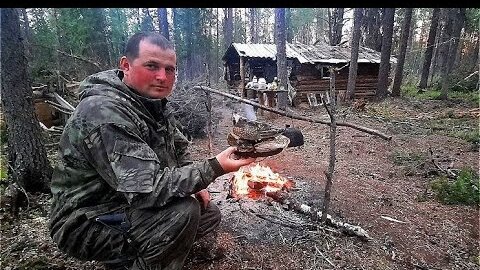 Царская уха из голов щуки. Жизнь рыбаков в тайге. Рыбалка, таёжный быт, лесная кухня, изба.