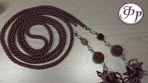 Вяжем жгут из бисера крючком. Лариат "Сиреневый листопад"