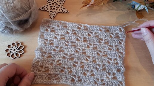 Вяжем узор "Прямоугольные ячейки и ажур" крючком.