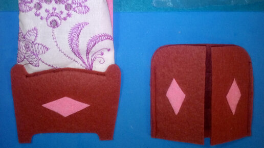 Детская развивающая книжка из фетра #6 - "Кукольный домик". Страница - Спальня.