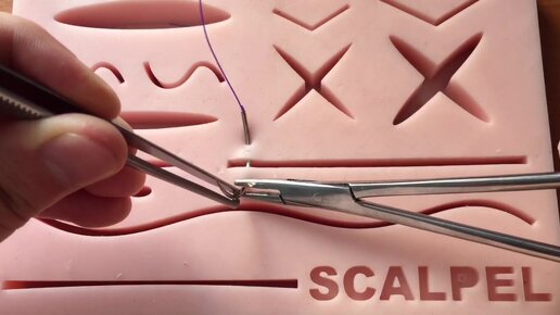 Тренировка студента медицинского университета по накладыванию швов на кожу