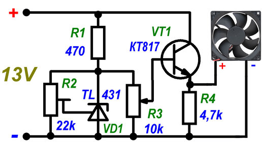 Как сделать простой регулятор оборотов компьютерного вентилятора, где скорость вращения регулируется величиной напряжения, схема