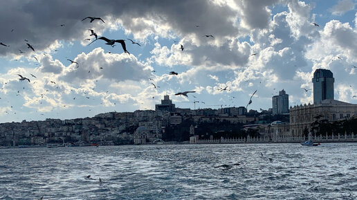 Пролив Босфор, могучий и прекрасный, и чайки. Куда же без них. Морские чайки огромные и дерзкие. Их сотни, они не боятся никого