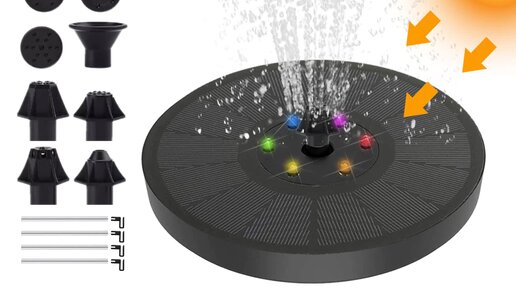 Плавающий фонтан, с солнечной батареей. Цена: 757,57 - 1 744,30 руб
