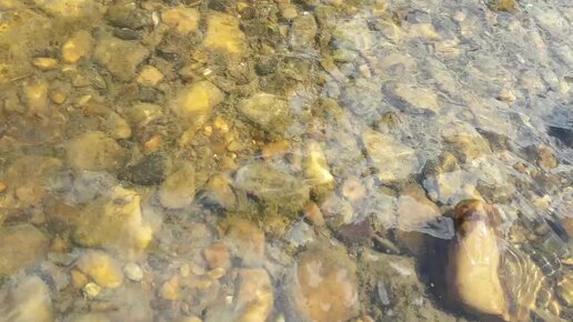 Вода перебегает по камням в реке Уфа