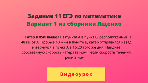 Задание 11 ЕГЭ по математике вариант 1 из сборника Ященко