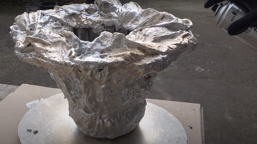 Из остатков цемента и тряпок получилось прекрасное кашпо для дачных растений