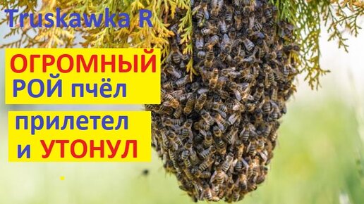 Большой рой пчёл прилетел на пасеку. И попал под сильный ливень. Экстремальная посадка роя в улей.