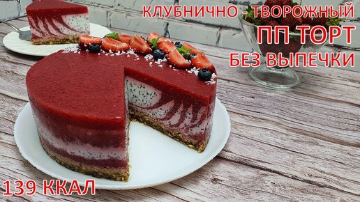 КЛУБНИЧНО - ТВОРОЖНЫЙ ПП Торт БЕЗ ВЫПЕЧКИ/ПП десерт ДЛЯ ТОНКОЙ ТАЛИИ без муки и сахара