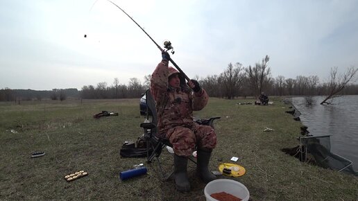 Фидер на малой реке. Ловля леща, все таки он проснулся.