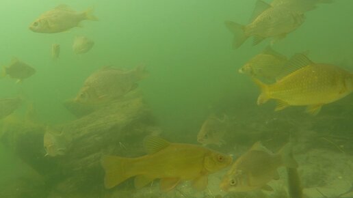 Карьер кишит рыбой - стаи карасей и лини пришли на прикормку