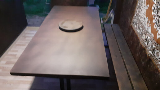 Взял Б/У трубу , подшипник и сделал необычный стол и лавочку в беседку !