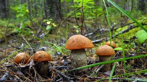 Грибы пошли. Сбор первых грибов в березовой роще.