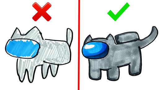 Как нарисовать Кот Амонг Ас правильно и неправильно. Рисунки Юльки