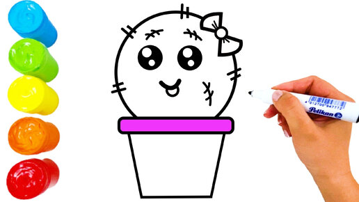 Как нарисовать Кактус. Мультик раскраска для детей. Учимся рисовать простые рисунки для детей.