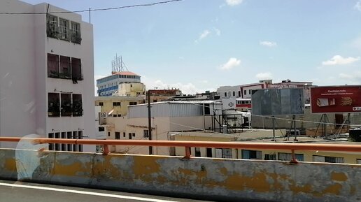 Еду по столице Доминиканы. Жилые дома с видом на пробку