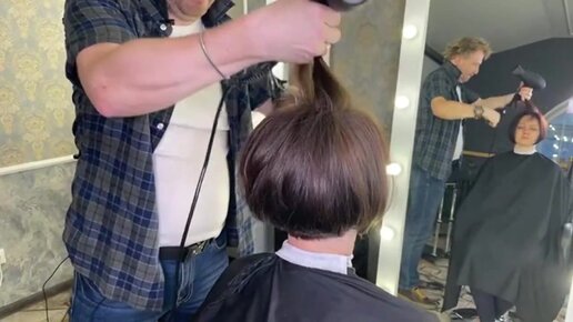 Интересный фрагмент. Базовая укладка по форме стрижки боб-каре.