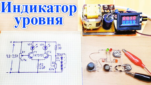 Как сделать двух светодиодный индикатор порогового напряжения с плавно изменяемой яркостью, схема, описание работы, + пример