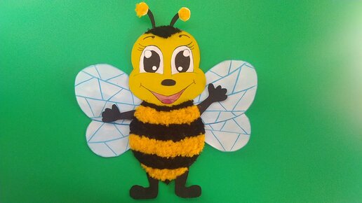 Пушистая пчёлка. Аппликация из бумаги и цветной пряжи своими руками.