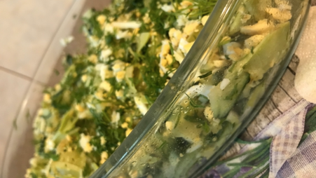 Впервые приготовила салат с жареными кабачками. Получилось вкусно и необычно