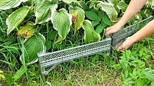 Декоративный забор для цветов из пластикового ящика своими руками.