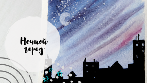 Ночной город акварелью и маркером