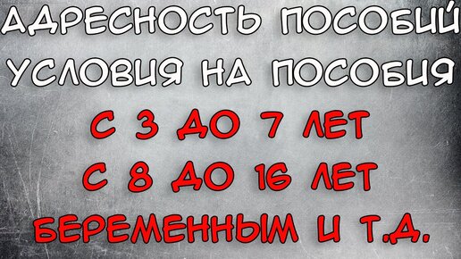 Адресность детских пособий с 3 до 7 лет с 8 до 16 лет и беременным