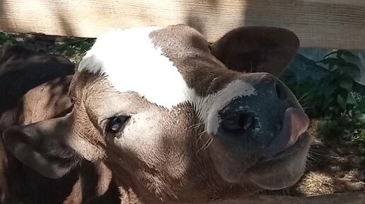 Теленку нравится ко мне приставать,хоть он уже все требования усвоил