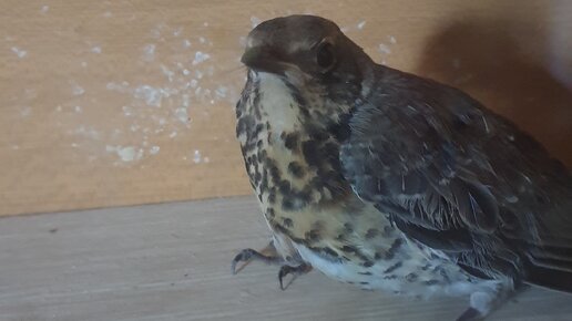 Птичка -дрозд не смогла взлететь после освобождения из сетки:(,оставили на время у себя