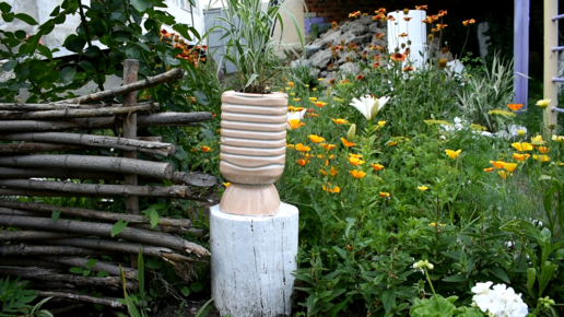 Вазон для сада. Поделка из пластиковой пятилитровки и цемента.