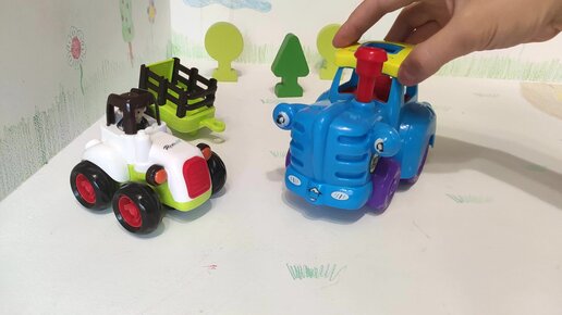 Синий трактор Гоша привез на ферму конфетки для животных