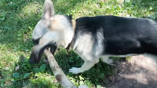Щен Дар и чужая палка. Хозяин палки давно ушел, а субординация соблбдается