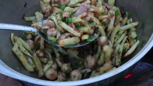 ХИТ СЕЗОНА. ГРИБЫ С КАРТОШКОЙ В КАЗАНЕ НА КОСТРЕ.
