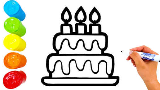 Как нарисовать Торт. Мультик раскраска для детей. Учимся рисовать простые рисунки для детей.