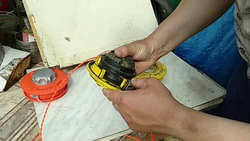 Как разобрать и заправить леску в головку на триммер GARDEN
