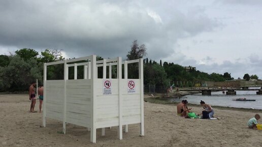 Пляж Омега в Севастополе : Закрытые кафе, бары и полупустой пляж