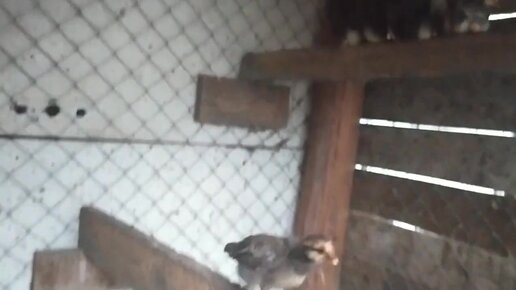 Мама курица учит цыплят сидеть на жордочке