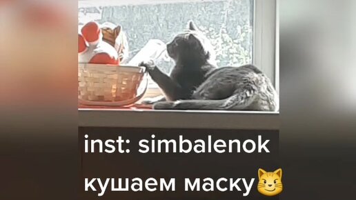 Голодный кот,ест маску