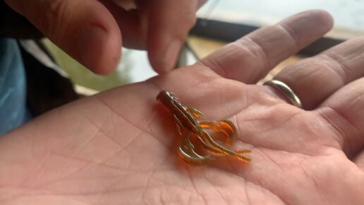 Силиконовый рачок. На него мы ловим от окуня до судака