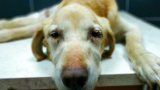 У старенького истощенного лабрадора не было уже даже сил встать. Пытаемся спасти