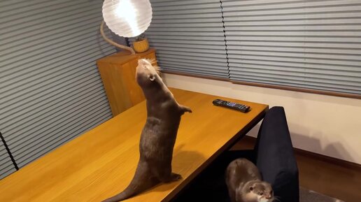Выдра встала на задние лапы, чтобы посмотреть телевизор