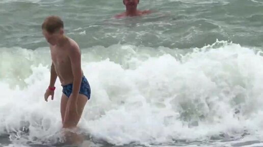 Дикие волны на пляже Судака. Туристы покидают пляж Крыма