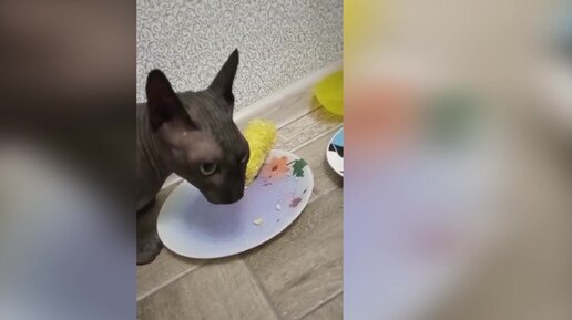 Лысый кот превращается в лысого вора, когда чует запах вареной кукурузы!