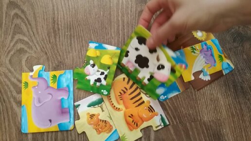 Веселая ферма. Учим животных и их детенышей! Зоопарк. Развивающий пазл для детей!