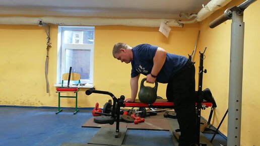 Спорт бесплатно - тяга гири в наклоне с опорой на скамью