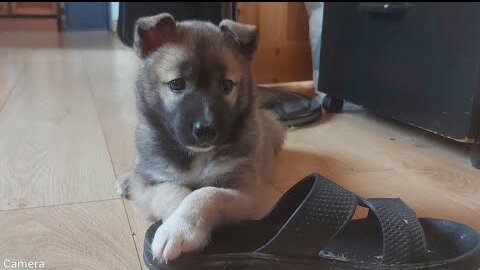 У щенка Грома завтрак молоко и индейка