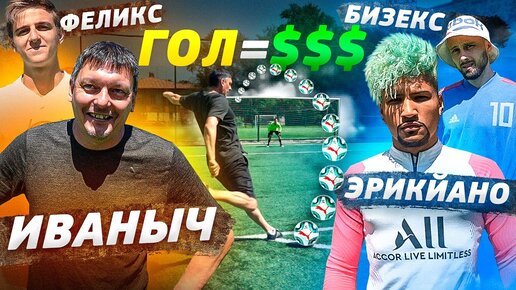 ЗАБЕЙ ДЕСЯТЬ vs ЭРИКЙАНО, ИВАНЫЧ и БИЗЕКС! ГОЛ = 1.000 РУБЛЕЙ!