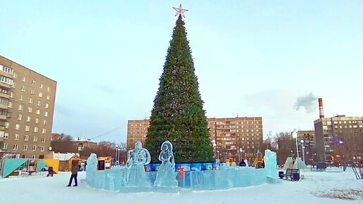 Магнитогорск, новогодняя ёлка и ледяной городок в сквере Бориса Ручьёва (21.12.2020)